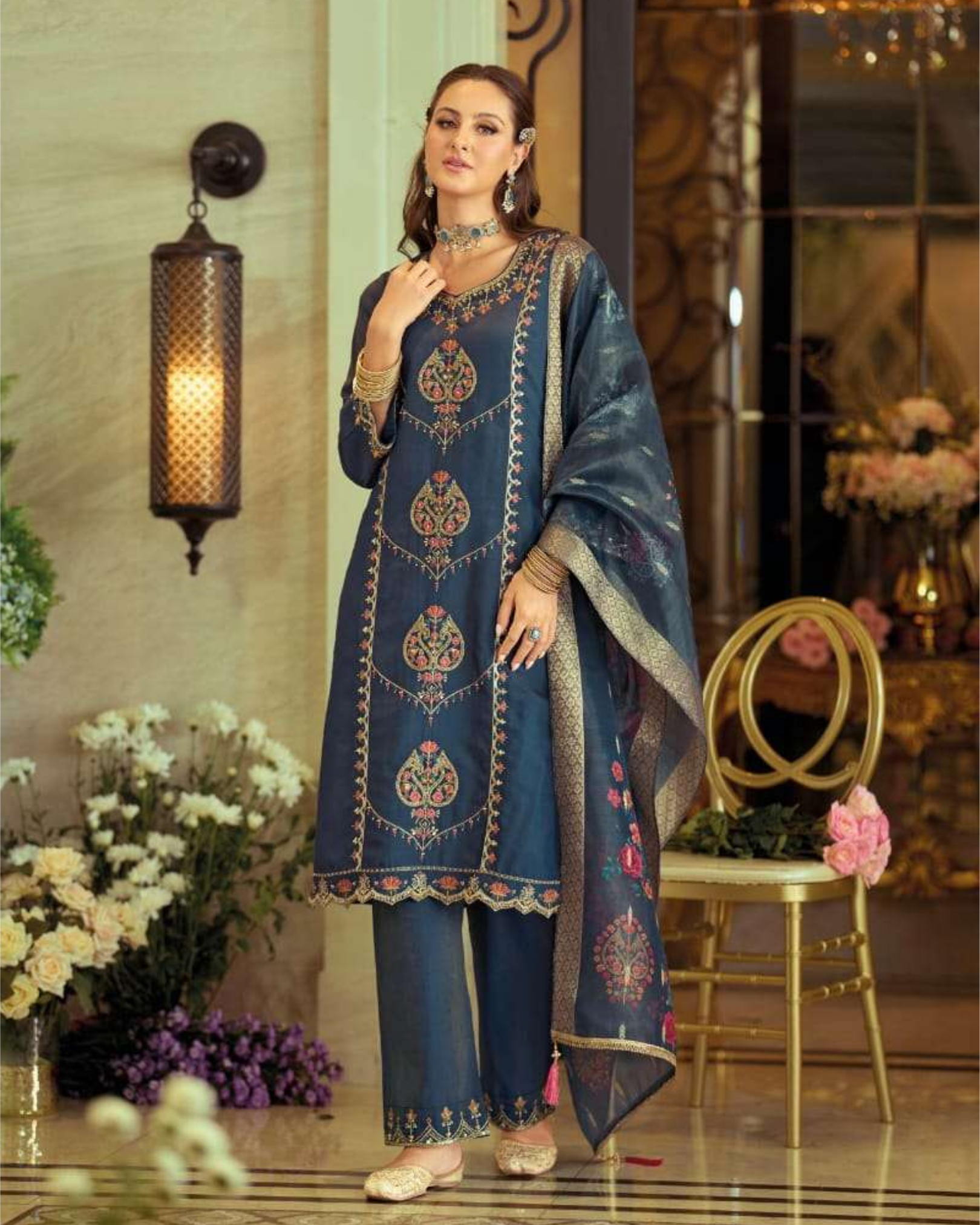 Fully stitched and ready to wear, this versatile four-piece set is ideal for festive gatherings, celebrations, evening events, and party occasions. Designed to suit multiple sizes including plus-size options, it blends premium handwork with modern comfort — making it perfect for fancy kurtis, partywear kurtis, and embroidered kurti pant dupatta collections.