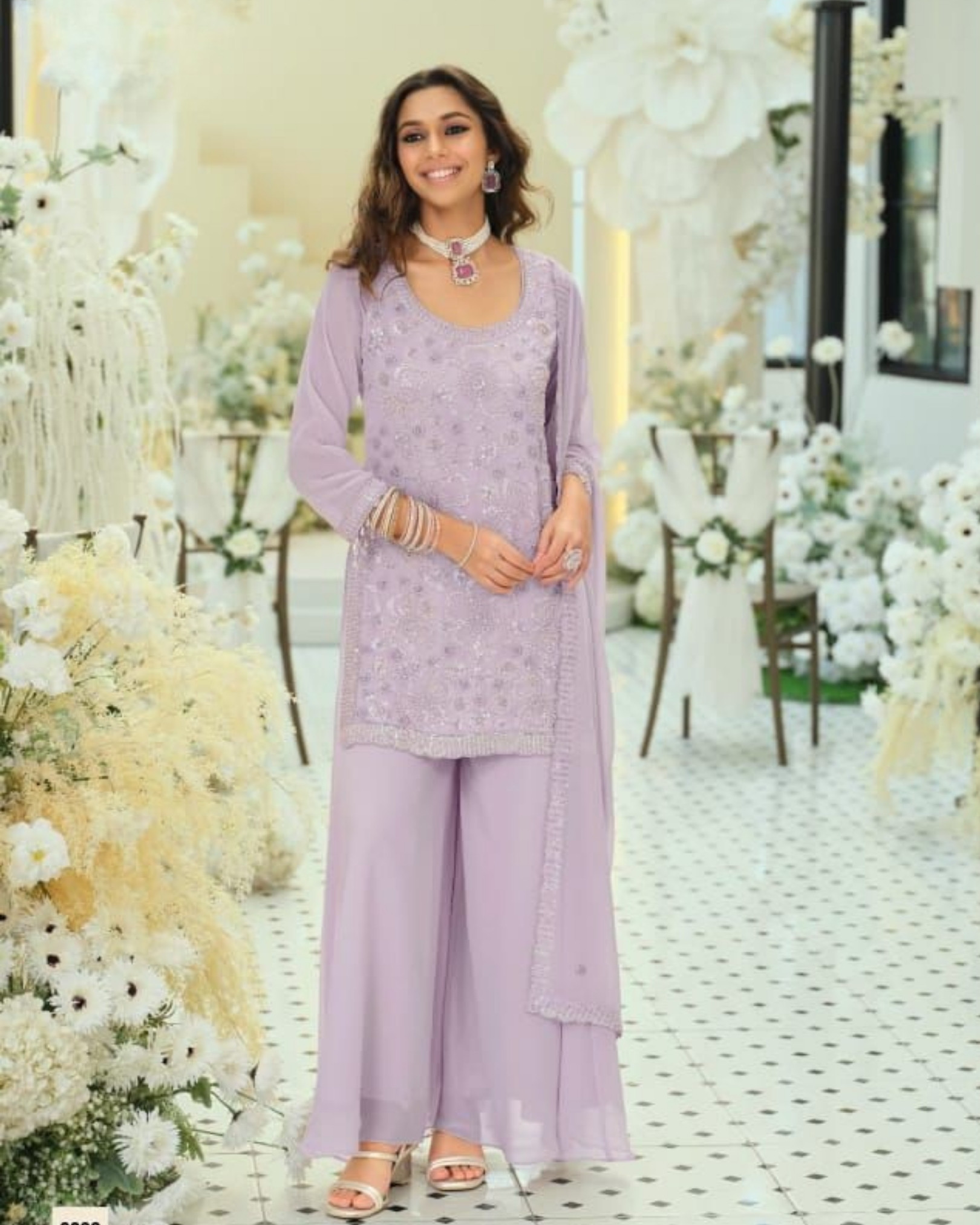 Fabric: Real Georgette (Top, Plazo, Dupatta)