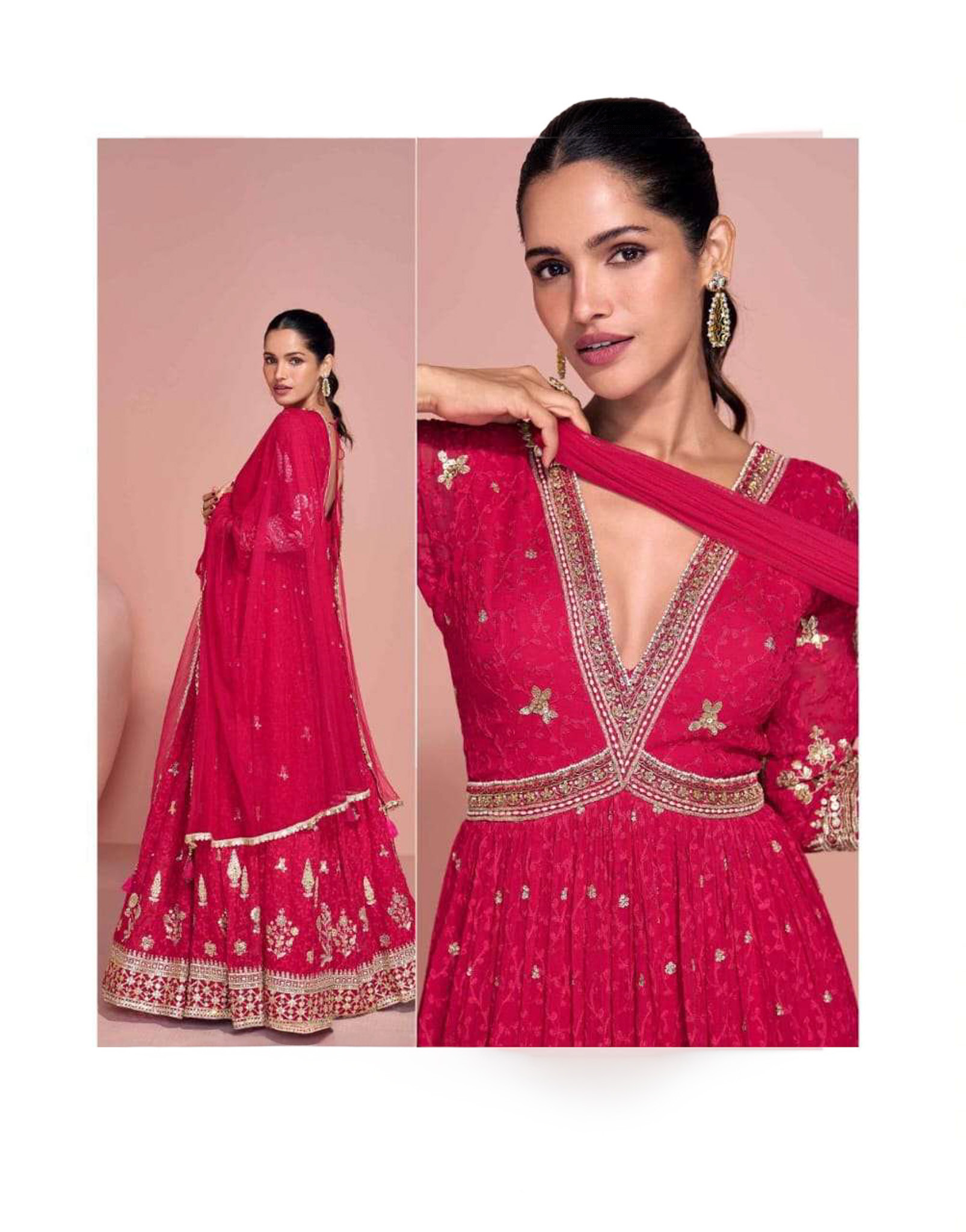 Step into festive elegance with this beautifully crafted Kurtha Set, designed to make a graceful statement at celebrations and special occasions. Made from premium real georgette, this ensemble features intricate front and back embroidery that adds richness and refined detail to the overall look.